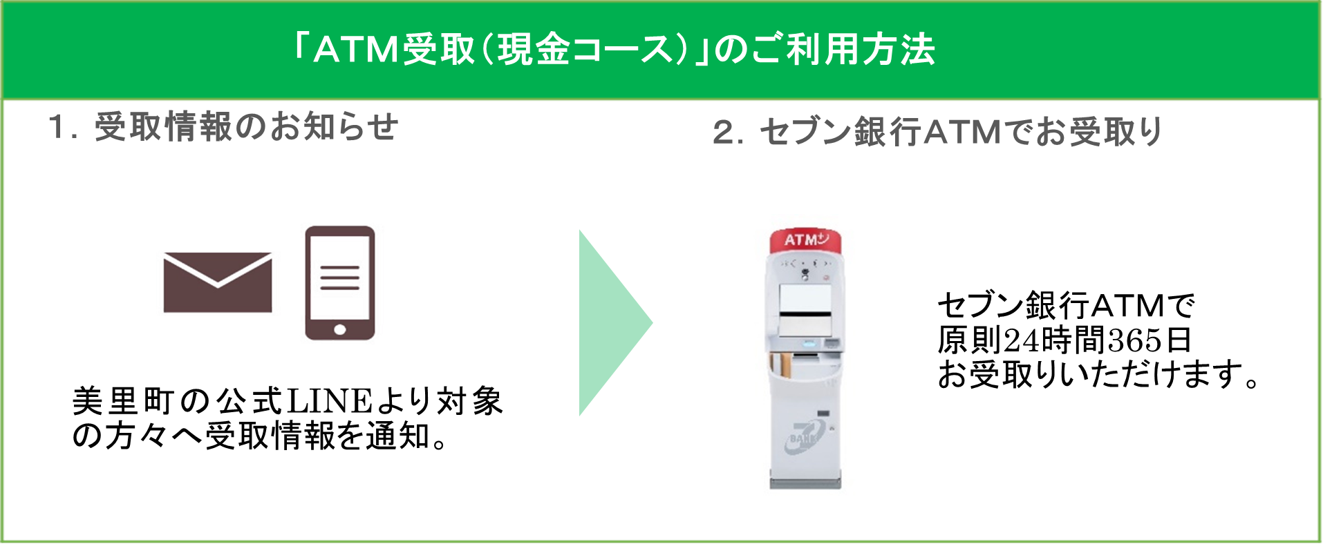 株式会社セブン銀行グループの株式会社セブン・ペイメントサービス(本社:東京都千代田区、代表取締役社長:柏熊 俊克)は、埼玉県児玉郡美里町(町長:原田 信次、以下 美里町)へ「ATM受取(現金コース)」の提供を2025年11月4日(火)より開始しました。